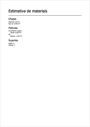 Esses valores são aproveitados nos relatórios para calcular a estimativa de materiais do projeto.